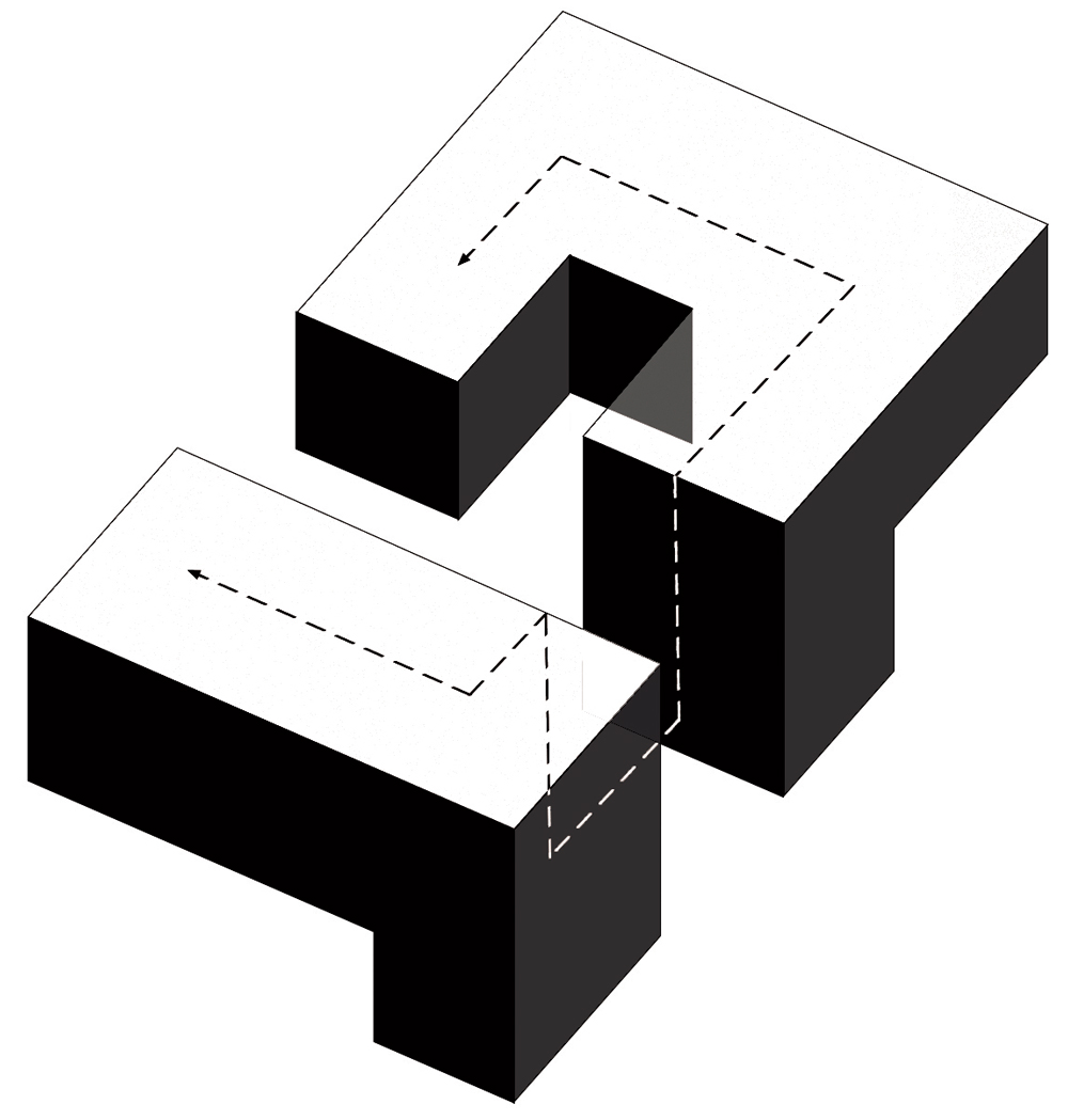 For us, the empty space was important in this project, so that first, empty spaces were created according to the program and the wishes of the client, then other parts of the project, like a continuous loop, formed around these voids. This solution is the result of an indirect dialogue and quotation with two projects of Koolhaas (a very large library and CCTV project in China). Subsequently, the project was accompanied by a fundamental change in the traditional Yazd homes program, and the fact that the kitchen was located in Yazdi houses somewhere outside of the home, and this also expressed the status of woman in the traditional world. But in this project, the kitchen is the focal point of the house, in which both the private space and the public space are in contact, and represents the position of the woman in the modern world. Regarding the way in which the project is organized, the project is such that in the future two family members can be placed at the upper and lower levels and parents at an intermediate level if this is desired, which emphasizes the flexibility and economy of the old houses.  Finally, the materials that are considered in the construction of this project are concrete and brick, one regional and the other international, which makes the double reading of the work and the establishment of a border between Iranian and global architecture.