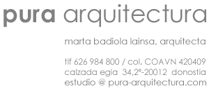 Marta Badiola founded pura arquitectura in Donostia to work in sustainable and close architecture. She understands architecture as a suit tailored to each client. She works on their needs and desires taking care of the details and avoiding conventional solutions.