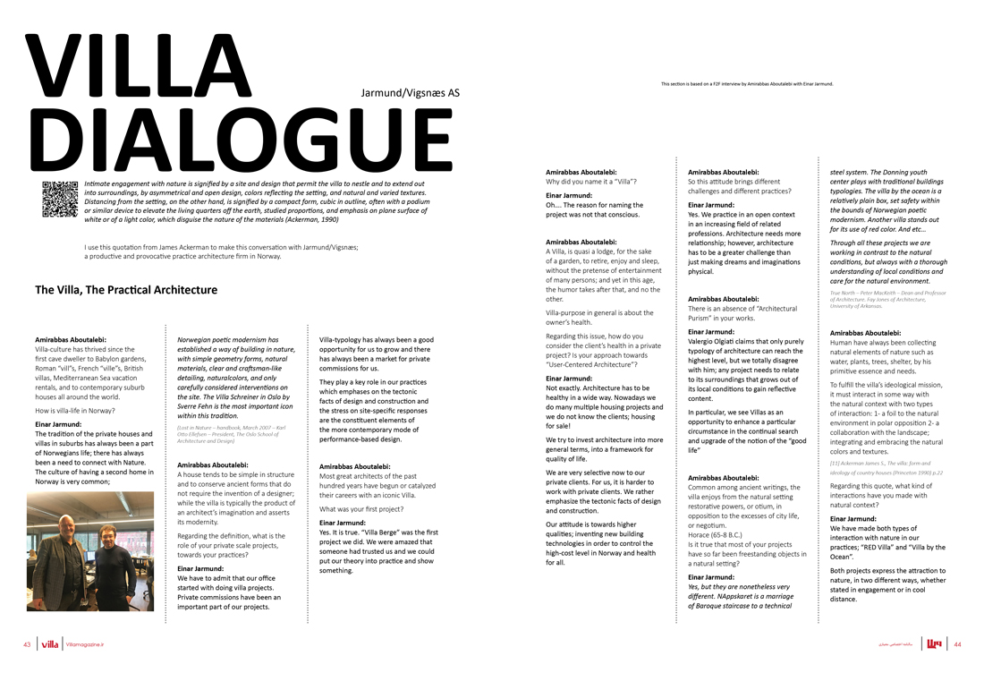 I use this quotation from James Ackerman to make this conversation with Jarmund/Vigsnæs; a productive and provocative practice architecture firm in Norway.