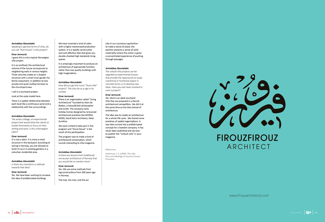 The program was to make a kind of architectural conversation, which sounds interesting to Villa magazine.